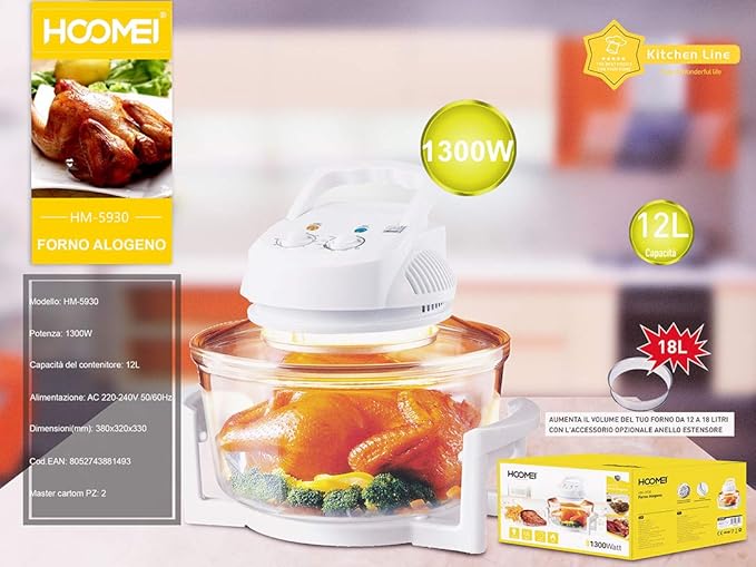 Descrizione del Prodotto Scopri il Forno Alogeno 1300W, un dispositivo innovativo che offre una cottura sana e veloce. Grazie al circuito di aria calda in movimento, questo forno è in grado di decomporre...
